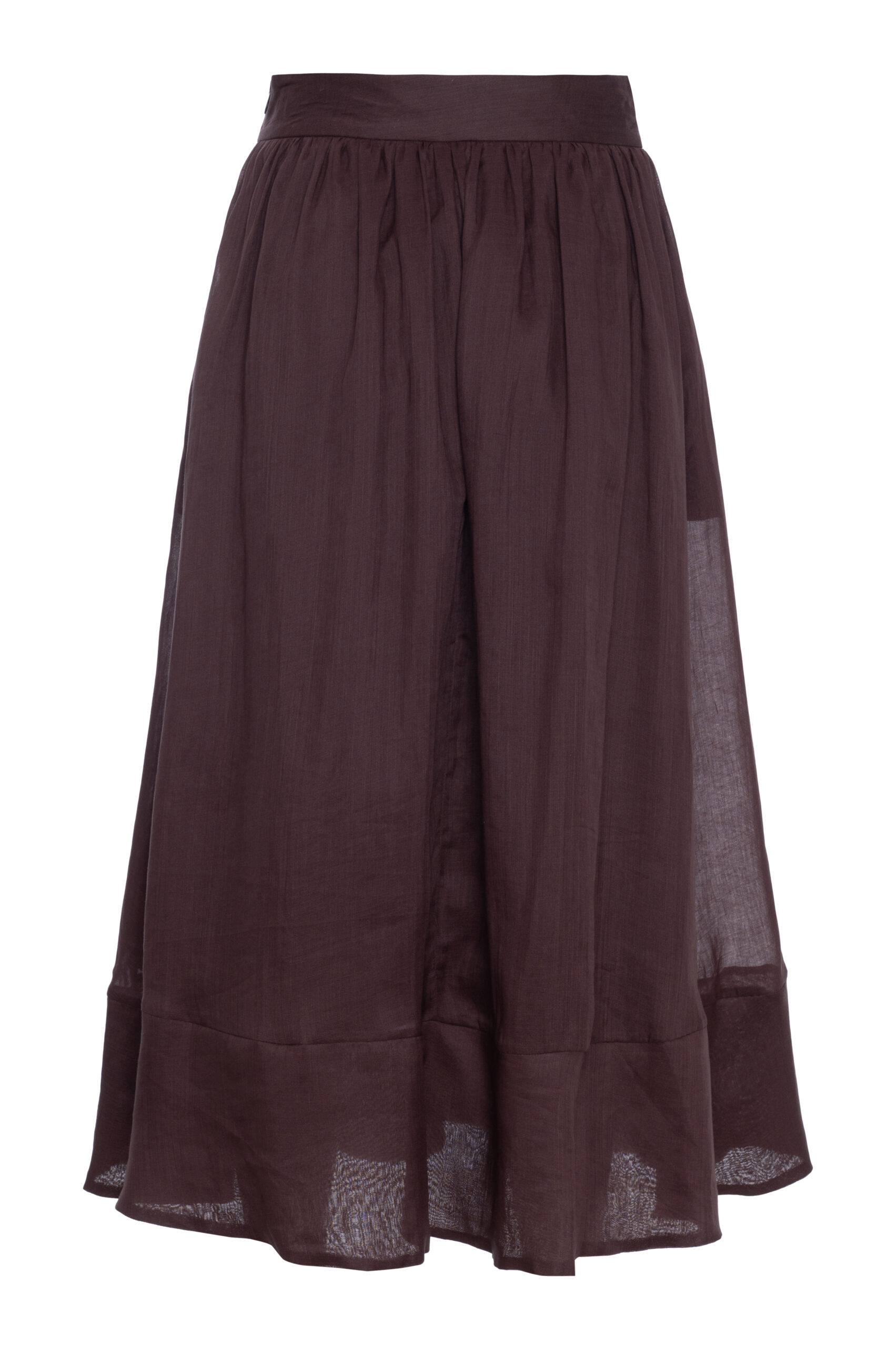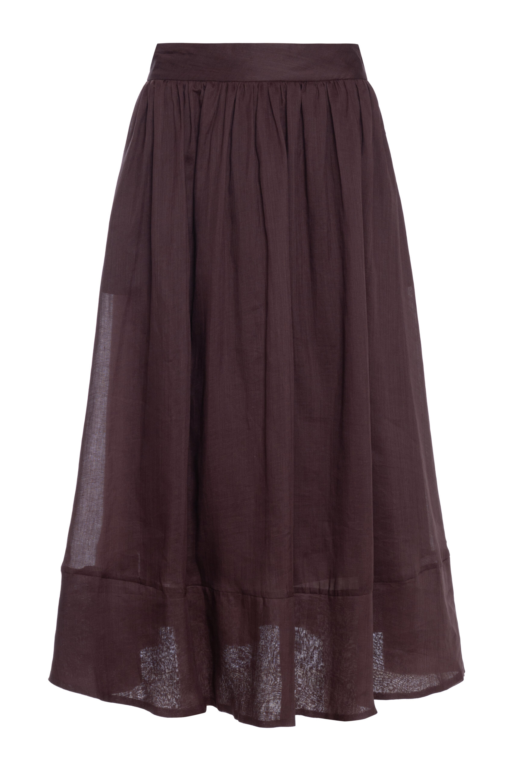Saia midi com corte classico rodado, cintura alta com fechamento lateral por ziper invisivel e barra larga. Possui bolsos.