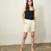 Shorts cintura alta, comprimento médio e barra italiana confeccionado em jacquard azul.